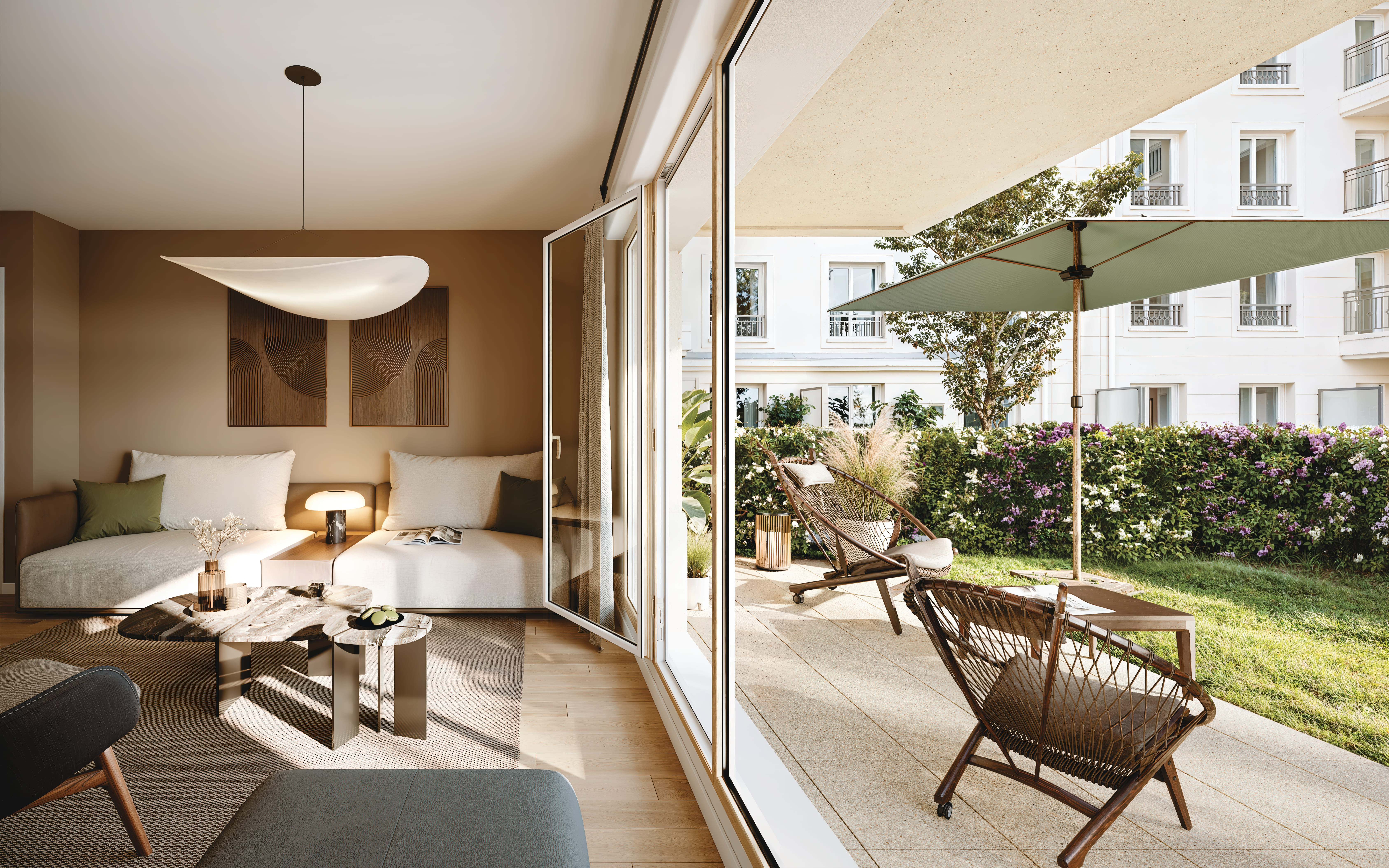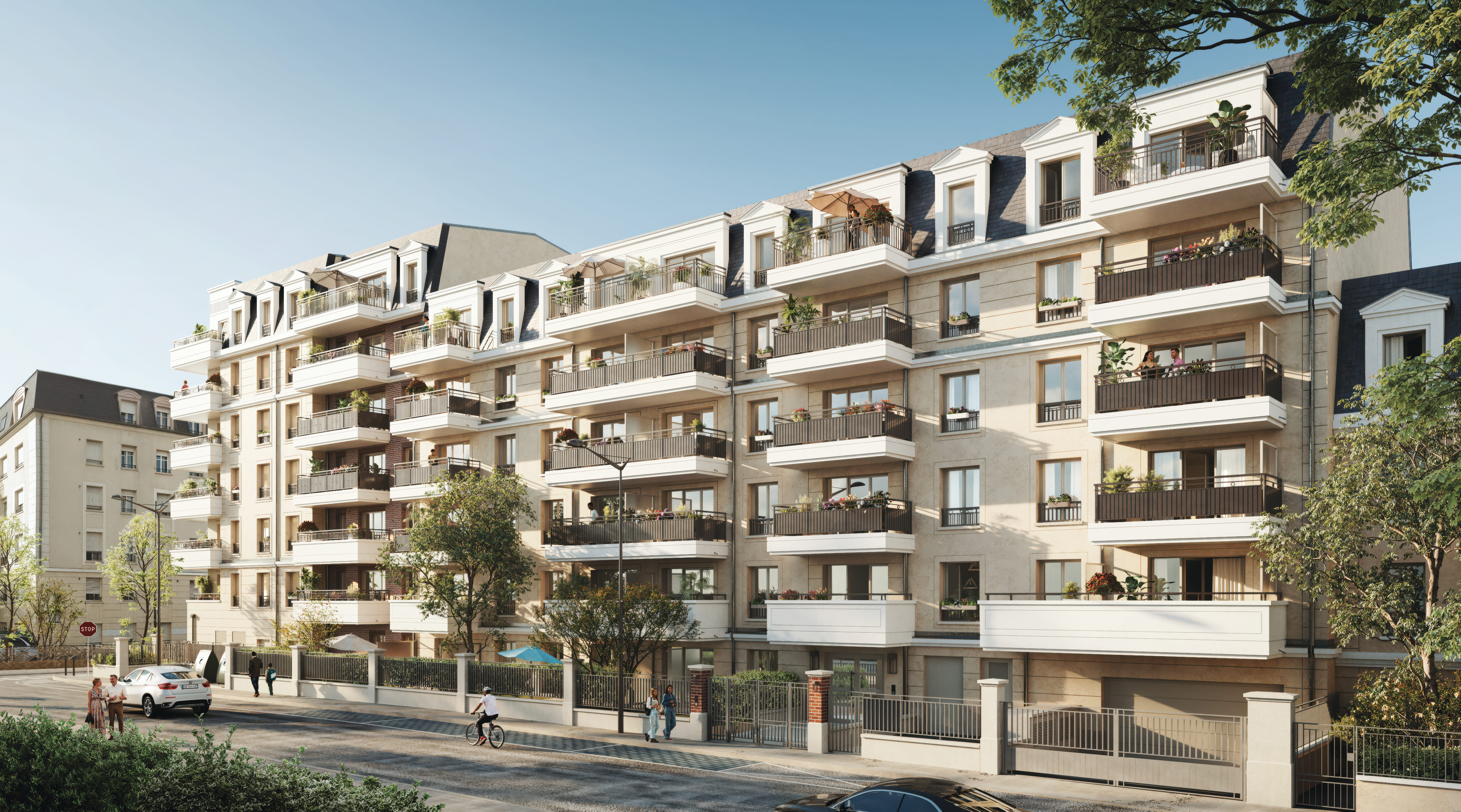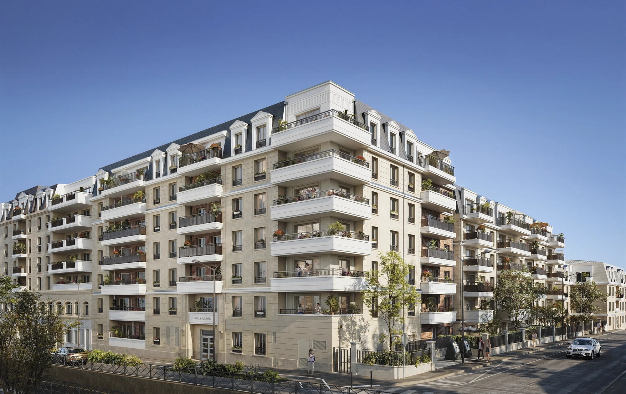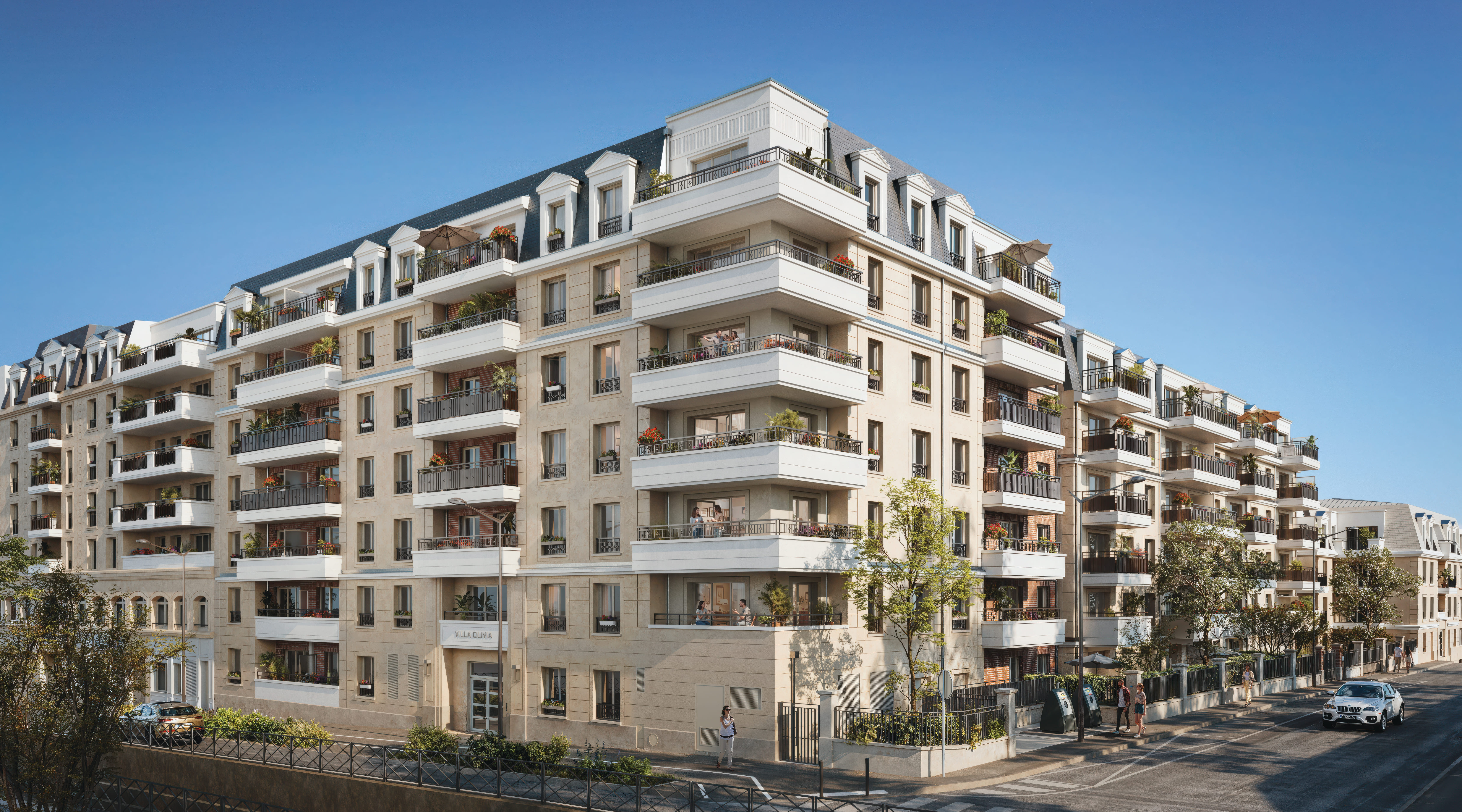 Cinquième réalisation Franco Suisse à Sartrouville, Villa Olivia affirme une architecture élégante et intemporelle d’inspiration néoclassique. Façades en pierre de taille, toitures à la Mansart, corniches et détails finement travaillés traduisent l’exigence et le savoir-faire de la signature Franco Suisse. En cœur d’îlot, deux jardins paysagers offrent un cadre verdoyant préservé, prolongeant naturellement les espaces de vie.