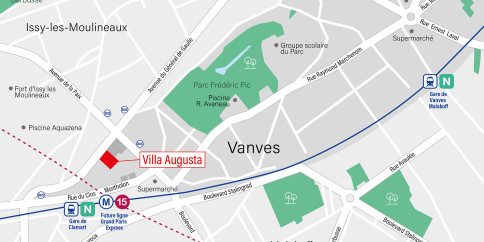 Franco Suisse signe sa 5ème réalisation au cœur de ce quartier résidentiel des Hauts-de-Vanves, recherché pour son environnement calme et résidentiel. À seulement 250 mètres de la gare Transilien de Clamart et de la future station de métro de la ligne 15 du Grand Paris Express, Villa Augusta profite pleinement de la proximité des écoles, des commerces et des équipements.