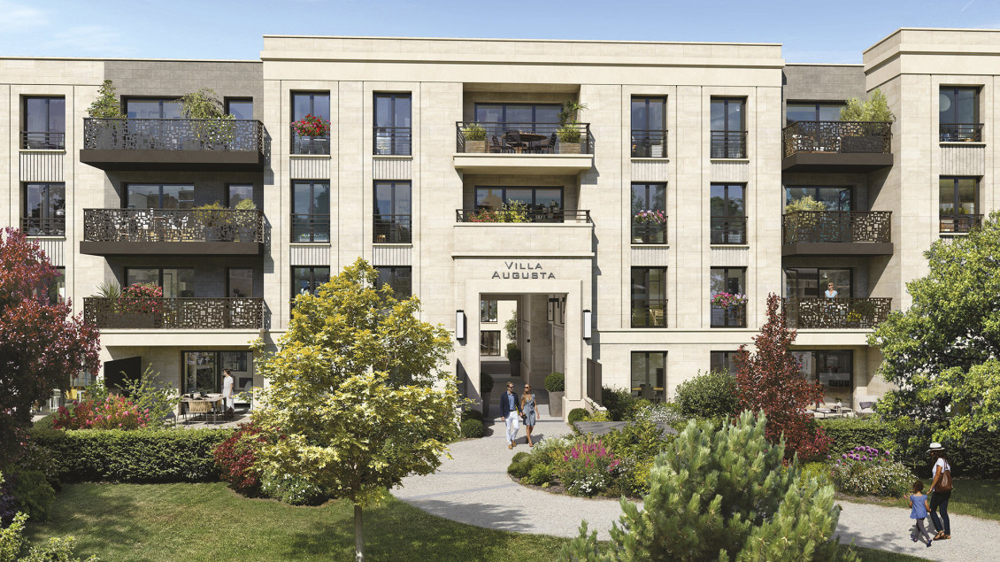 En retrait de la rue, protégée par un magnifique espace paysager, Villa Augusta séduit par son majestueux porche d’entrée et ses façades en pierre de taille. Le dessin architectural se pare de nombreux détails illustrés par les modénatures et les garde-corps ouvragés.